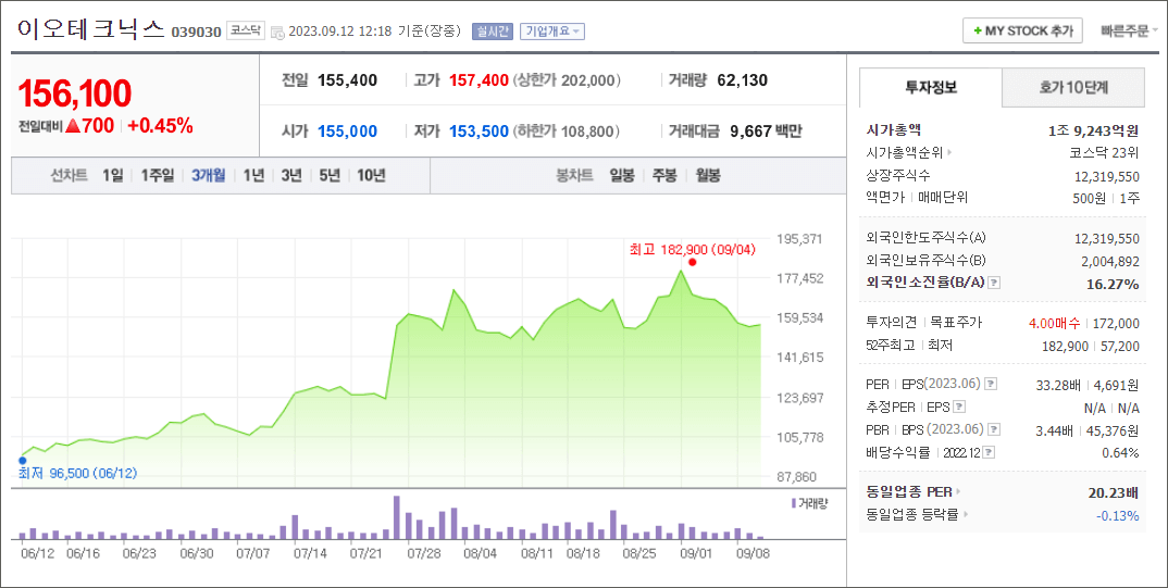 23.9.11일 기준투자의견은[매수]목표주가 172,000원입니다. 현재 목표주가보다 약 10% 낮은 15만 원대에서 거래되고 있습니다.